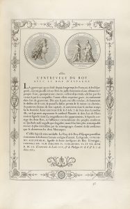 l´Imprimerie Royale], 1723. Gran folio. Frontispicio dibujado por A. Coypel y grabado por Simonneau + portada grabada + 318 lám. grabadas en recto, 6 h. impresas en recto y verso y con orla grabada todas diferentes. Enc. original de la época en plena piel con estampación dorada del superlibris con las armas reales de Louis XV en ambos planos, nervios y hierros dorados entre ellos monograma cifrado de Louis. Cortes dorados y marbelados. Interior en muy buen estado y papel blanco grueso de gran calidad. La encuadernación sufre rozaduras y ligeras pérdidas en los nervios. Edición original de esta versión mejorada y muy ampliada (por fechas) de la que se publicó en 1702. Cada medalla representada lleva una explicación del hecho histórico, además de la descripción numismática.