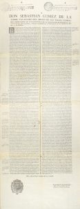 ella: segun la Real Ordenanza.... Palma de Mallorca: s.i., 1756. Folio elefantino (105x40 cm). Una larga hoja (3 hojas pegadas) impresa a dos columnas, separado por filete tipográfico, en papel sellado. Letra capital xilografica, y escudo de Mallorca. Buen estado. Bando de más de un metro de largo impreso a dos columnas y que contienen el texto de dos Reales Cédulas sobre Caza. Importante y muy raro en estas condiciones.