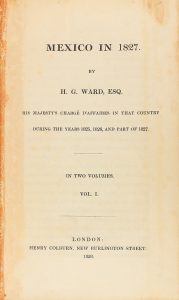 .1828.. LIBRO: .(VIAJES).. .WARD, H. G.:. .MEXICO IN 1827 BY.... London: Imp. Henry Colburn (R. and S. Bentley), 1828. 2 vol. en 4º menor. I: XIX + 591 p. II: VIII + 730 p. 13 lám. (7 plegadas y una en color), dibujadas por la esposa del autor y...