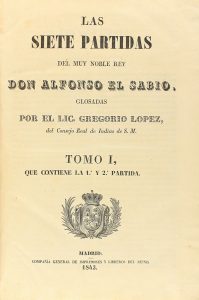 .1843-1844.. LIBRO: .(DERECHO-ALFONSO X).. .ALFONSO X EL SABIO:. .LAS SIETE PARTIDAS DEL MUY NOBLE REY DON ALFONSO EL SABIO, GLOSADAS POR EL LIC. GREGORIO LOPEZ, DEL CONSEJO REAL DE INDIAS DE S. M.. Madrid: Compañía General de Impresores y Libreros...