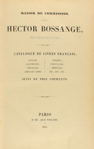 .1845.. LIBRO: .(BIBLIOFILIA).. .BOSSANGE, HECTOR:. .CATALOGUE DE LIVRES FRANÇAIS, ANGLAIS, ITALIENS, ALLEMANDS, PORTUGAIS, ESPAGNOLS, ORIENTAUX, GRECS ET LATINS, ETC., ETC., ETC., SUIVI DE PRIX COURANTS.. Paris: Librairie de Hector Bossange...