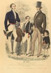 .1852-1856.. LIBRO: .(MODA-GRABADOS).. .L´ELÉGANT. JOURNAL DES TAILLEURS.- LE LION. JOURNAL DES NOUVEAUTÉS ET DES MODES D´HOMES.. [París]: Imp. Mariton, 1852-1856. 4º mayor. 99 láminas grabadas en metal e iluminadas a mano en colores vivos y...
