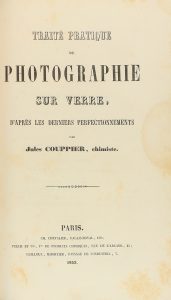 .1852.. LIBRO: .(FOTOGRAFÍA).. .COUPPIER, JULES:. .TRAITÉ PRATIQUE DE PHOTOGRAPHIE SUR VERRE, D´APRÈS LES DERNIERS PERFECTIONNEMENTS.. Paris: Ch. Chevalier; Puech et cie; Guilloux [ imprimerie de W. Remquet et cie], 1852. 8º mayor. 61 p.+ 1 h....
