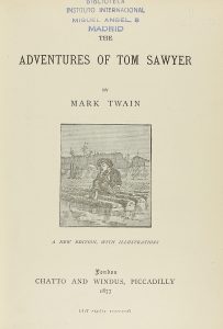 .1877.. LIBRO: .(LITERATURA).. .TWAIN, MARK [PSEUD. CLEMENS, SAMUEL LANGHORNE]:. .THE ADVENTURES OF TOM SAWYER.. London: Chatto and Windus, Piccadilly, 1877. 8º. 4 h.+ 339 p.+ 32 p. de catálogo de libros ´Chatto & Windus´s List of Books´, dated...