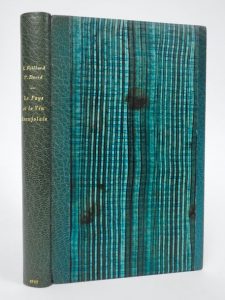 FOILLARD (L. et DAVID (T.): Le Pays et le vin Beaujolais, suivi d'une anthologie bachique. Villefranche en Beaujolais, Guillermet, 1929. In-8 demi-maroquin turquoise à bandes moderne, tête dorée, cuv. Cons. (dos un peu passé) Frontispice de Burnot et dessins de Limonon. Une carte dépliante. Ouvrage tiré à 200 ex., celui-ci n°77. (qq légères rouss.)