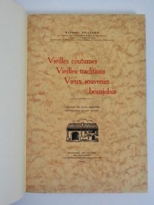 BILLIARD (R BILLIARD (R.): Vieilles coutumes, vieilles traditions, vieux souvenirs beaujolais. Préface de …