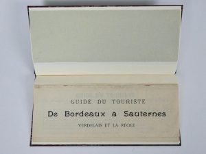 Guide du Touriste de Bordeaux à Sauternes; Verdelais et La Réole. Bordeaux, Féret et Fils, s.d. in-8 étroit demi-toile moderne, couv. Cons. (doublée et réparée). L'ouvrage a entièrement été monté sur onglet et est bien complet du grand panorama dépliant en couleurs. Rare.