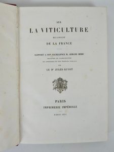 GUYOT (J GUYOT (J.): Sur la Viticulture de l'Ouest de la France. Imprimerie Impériale, 1866. In-8 …