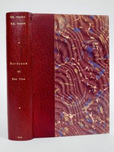 COCKS et FERET: Bordeaux et ses vins classés par ordre de mérite. Bordeaux, Féret et Fils, et Paris, Masson, 1886. Fort in-8 demi-maroquin bordeaux moderne, tête dorée, couv. Imp. (doublée) cons. 5ème édition, illustrée d'une carte dépliante et de 225 vues de châteaux viticoles.