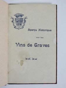 Collectif - Aperçu historique sur les vins de Graves. Plaquette in-12 bradel de demi-chagrin prune moderne, couv. Imp. (doublée) cons., 15 pp.