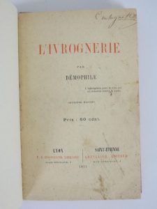[TARDIEU Ambroise] Démophile: l'ivrognerie. Lyon et Saint-Etienne, 1871. In-16 bradel de toile bordeaux moderne, couv. Imp. Cons.