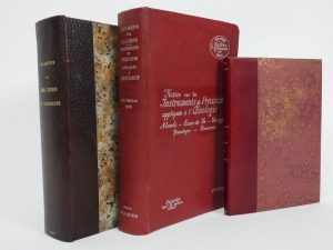 KRAU (Abbé): Le vin dans l'éloquence sacrée… commentés par Georges Rozet. Confrérie des Chevaliers du Tastevin, 1955. In-4 maroquin à bandes bleu et rouge, tête dorée, couv. Cons. Illustré d'eaux-fortes de Louis Guidot. 1/200 sur pur fil de Lana enrichi de 3 planches en tirage d'essai signées par l'artiste et d'un dessin original à l'encre représentant une procession.