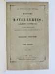 FRANCISQUE-MICHEL et FOURNIER (E.): Histoire des hôtelleries, cabarets, courtilles et des anciennes communautés et confréries d'hôteliers, de taverniers, de marchands de vins, etc. Cherbuliez, 1854. In-4 demi-chagrin vert moderne, couv. Imp. (doublée) cons. papier bruni. , mouillures, manques au ff de table des matières.