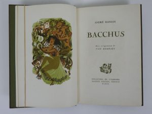 RANSAN (André): Bacchus. Ponsot, 1947. In-8demi-maroquin olive à bandes, tête dorée, couv. Cons. Edition illustrée de bois originaux en couleurs par Van Rompaey. 1/960 sur BFK.