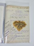 ALCOOL - Réunion de documents: Action de la Compagnie Industrielle des Alcools de l'Ardèche, 1908; -Enregistrements officiels d'étiquettes de Cognac: Gilson, Hine et Co, Mounié et Co, Chemineaud Frères. 13 documents.