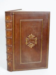 CATON l'Ancien: LIBRI de Rerusticam Catonis…Paris, Galeotum, 1533. In-folio plein maroquin marron, dos ànerfs et plats ornés à l'imitation, étui (rel. Pastiche signée Lobstein-Laurenchet). Illustré de bois gravés dans le texte. Edités par Robert Estienne ces textes traitent de la culture des champs et des jardins, de l’élevage des abeilles, de la pêche, d’économie rurale, de recettes de cuisine, de médecine. Seule œuvre de Caton qui nous soit parvenue en entier, le De agricultura aborde les thèmes de la culture des céréales, de la viticulture, de l’arboriculture, et de l’horticulture ; le texte traite aussi des obligations du fermier, de pâtisserie, de vins médicaux, ou encore du traitement des luxations et des fractures. De la Bibliothèque Kilian Fritsch.