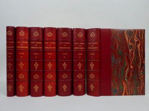 VIALA et VERMOREL: Ampélographie…Masson et Cie, 1901-1910. 7 vol. in-4 demi-maroquin bordeaux moderne, dos à nerfs orné de grappes de raisins et feuille de vigne. Ouvrage illustré de 500 planches en couleurs, 70 planches en noir et 840 figures dans le texte. ouvrage de référence et unique en son genre, fruit de 10 ans de travail des auteurs aidés de nombreux ampélographes du monde entier. L'ouvrage recense 5200 cépages du monde entier avec la particularité d'avoir 500 planches en couleurs de cépages au format réel. Bel exemplaire.