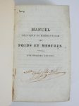 RORET (Encyclopédie): Réunion de 2 vol. in-12 reliés demi-veau bordeaux moderne, couv. Cons. (doublées): -Alcoométrie; spirituosité, mouillage et remontage des alccols. 1888. tableaux dépliants; -Manuel pratique et élémentaire des poids et mesures…1830 (sans les couv., petite galerie de vers)
