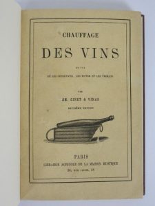 GIRET et VINAS: Chauffage des vins en vue de les conserver, les muter et les vieillir. Maison Rustique, s.d. In-12 bradel de toile marron moderne couv. Imp. (doublée) cons. (légères rouss.) Seconde édition.