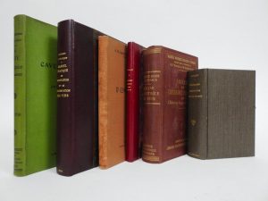 DIVERS - Réunion de 6 vol. bien reliés, couv. Cons.: -Flach: conservation des vins; -Nègre et Françot: Manuel pratique de vinification et de conservation des vins, 1947; -Berget: la viticulture nouvelle; relié à la suite: la Pratique des vins, 1899.; -Ribéreau-Gayon et Peynaud: Analyse et contrôle des vins. 1951; -Léchalet: la cave bourgeoise, 1909. -Hubert: traité d'oenologie pratique, 1908.