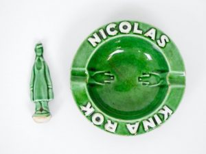 Cendrier pro cérame, vert avec petit Nectar pillon écrase-mégot, Vers 1930
