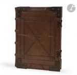 décor estampé à froid composé de filets en encadrement et en x au centre, ainsi que d’un motif floral aux angles, écoinçons et fermoirs en laiton ciselé, dos à nerfs (P. F. Eenhass relieur à Bruxelles).