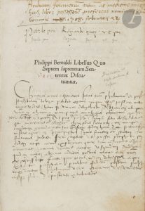 Édition originale dédiée à Johann von Wartenberg, de cet opuscule de seulement 24 feuillets de l’écrivain et érudit italien Filippo Beroaldo (1453-1505).