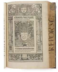 Très belle édition des commentaires du philosophe et théologien franciscain Johannes Duns Scotus (1265-1308) des Quatre livres des sentences du philosophe et théologien Pierre Lombard (1095?-1160?).