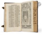 Belle impression en caractères gothiques sur deux colonnes par Jean Granjon. Chaque partie a une page de titre propre et une foliotation particulière. Les trois premières furent imprimées en 1517 et la dernière en 1518.