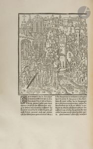 MONSTRELET (Enguerrand de). — Le Premier [-Second, -Tiers] volume de Enguerran de Monstrelet. —Paris : Antoine Vérard, [fin 1503]. — 3 parties en deux volumes in-folio, 341 x 226 : (10 ff.), ccci ff. mal foliotés cccii ; (8 ff.),...