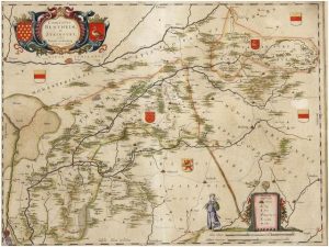 1638. (ALEMANIA). WESTENBERG, IOANNE; BLAEU: COMITATUS BENTHEIM ET STEINFURT. Amsterdam, 1638. Edits a Guiljel et Ioanne Blaeu. Grabado al cobre coloreado de época. 38x50 cm. Procedente de Theatrum Orbis Terrarum, sive Atlas Novus in quo Tabuls et...