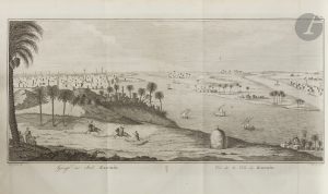 NIEBUHR (Carsten). — Voyage en Arabie & en d’autres Pays circonvoisins. — Amsterdam : S.J. Baalde ; Utrecht : J. van Schoonhoven & Comp., 1776-1780. — 2 volumes in-4, 252 x 198 : VIII pp., (3 ff.), 409 pp., 72 planches, 1 carte...