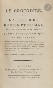 [SAINT-MARTIN (Louis-Claude)]. — Le Crocodile, ou la guerre du bien et du mal, arrivée sous le règne de Louis XV ; poème épiquo-magique en 102 chants, Dans lequel il y a de longs voyages, sans accidens qui soient mortels ; un peu d’amour...