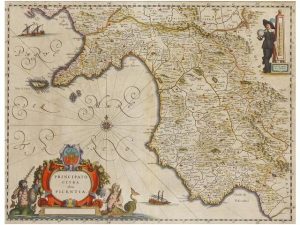 1645. (NAPOLES). BLAEU: PRINCIPATO CITRA OLIM PICENTIA. Mapa grabado al cobre coloreado de época. 39x50 cm. plancha; amplios margenes.