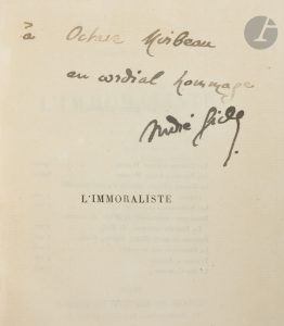 à Octave Mirbeau // en cordial hommage // André GideBon exemplaire malgré des frottements d’usage au dos et les coins légèrement émoussés.