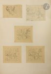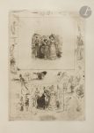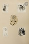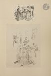 Il est enrichi à part dans un volume in-folio relié en demi-maroquin à coins, d’une série de 2 à 18 épreuves d’états de chacune des illustrations, sur différents papiers. Il s’agit d’épreuves souvent avec remarques, des tirages d’essai et des bons à tirer. Certaines portent des annotations de Henri Somm et les bons à tirer sont justifiés et signés par l’artiste.91 DESSINS ORIGINAUX.