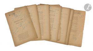Ce jeu complet est accompagné d’un autre jeu incomplet, mais possédant de très nombreuses corrections autographes de l’auteur ainsi que des notes en bleue de l’imprimeur.