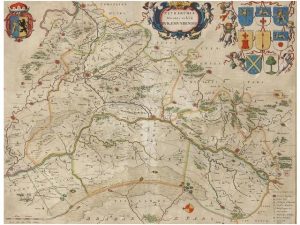 1664. (REINO UNIDO). BLAEU: TETRARCHIA DUCATUS GELRIAE RURAEMUNDENSIS. Procedente del Atlas van Loon. 42x53 cm. plancha; 55x67 cm. papel. Papel levemente oscurecido. Cerco de antigua mancha de humedad en el margen izquierdo.