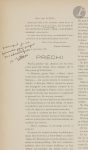 Exemplaire enrichi de l’article de Maurice Donnay sur La Butte, ses Écrivains et ses artistes, extrait des Annales, portant sur le cabaret du Chat-Noir. Il a été annoté par Adolphe Willette et sa sœur Pepita. Cette dernière a ajouté au-dessus d’un portrait de Rodolphe Salis : « Le diable ! Il me faisait peur quand j’avais 15 ans ! » et au-dessus de celui de Maurice Donnay : « Bon Dieu qu’il est laid ».