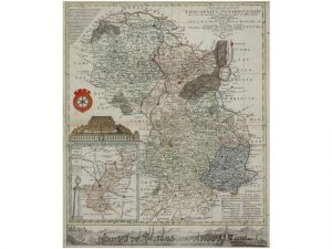 1784. (ALEMANIA). LOTTER: DELINEATIO EPISCOPATUS OSNABRUGENSIS. Grabado coloreado. 62x50 cm. plancha. En el margen inferior vista de la población.