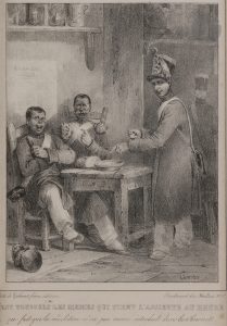Nicolas Toussaint CHARLET (1792-1845) — C’est toujours les mêmes qui tient (sic) l’assiette au beurre — Lithographie. — Parue dans l’album Fantaisies, publié en 1831. — Éditeur et lithographe : Gihaut frères. — 20,5 x 15 cm — Cadre.