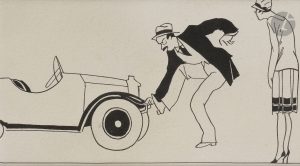 Zyg BRUNNER (1878-1961) — Couple mondain, 1926 — 3 encres. — Signées. — Dessins parus dans la revue La Vie parisienne en 1926. — Cadres. — À vue chaque : 10 x 19,5 cm.
