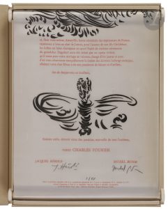 HÉROLD (Jacques) - BUTOR (Michel). — La Politique des charmeuses. — Vaduz : Brunidor, 1969. — Rouleau de soie imprimée entourée autour de deux cylindres incrustés dans un emboîtage de toile beige de l’éditeur.