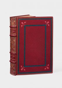 Le Puits de Sainte-Claire. Paris, A. Ferroud, F. Ferroud successeur, 1925. In-4, maroquin lie-de-vin, encadrement d'un filet doré et deux listels de maroquin vert, fleurs roses mosaïquées aux angles, dos orné et mosaïqué, tranches dorées, bordure intérieure, couverture et dos, étui (H. Blanchetière). Édition illustrée de 14 hors-texte et nombreuses compositions dans le texte de Georges Rochegrosse, gravées à l'eau-forte en couleurs par Eugène Decisy.