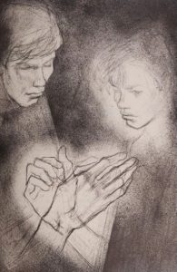 Les Garçons. Paris, NRF, 1973. In-4, box janséniste bleu nattier, nom de l'auteur, titre et nom de l'illustrateur poussés à l'œser bleu sur le dos, doublure sertie d'un filet doré et gardes de daim bleu, tranches dorées, couverture et dos, chemise et étui (Pierre-Lucien Martin, 1975). Édition illustrée de 46 compositions d'Édouard Georges Mac-Avoy reproduites en hors-texte, dont 16 en couleurs.