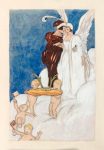 Enrichi d'un dessin original à l'aquarelle (17 x 11 cm) et de la décomposition des couleurs de la gravure correspondante, ainsi que du menu illustré, reliés in fine.