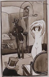 Un autre dessin (15,5 x 11 cm) sur calque contrecollé sur papier fort au crayon avec rehauts à l'encre ayant servi à l'illustration des Chansons de Bilitis, paru en 1927 chez l'artiste.