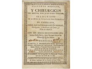 1731. (MEDICINA). CURBO, JUAN: SECRETOS MEDICOS Y CHIRURGICOS. Madrid: Imp. Bernardo Peralta, 1731. 8° mayor. 8 h. + 140 p. Enc. en medio pergamino. Ex-libris.