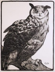 JOUVE (Paul). Lithographie Grand-duc. Une planche, 58 x 76 cm. Épreuve d’essai, sans remarque, sur japon fort. …