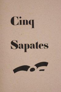 Cinq Sapates. Paris, Maeght, 1950. In-folio, en feuilles, couverture, emboîtage de l'éditeur. Édition originale de ces cinq poèmes dédiés à René Char, illustrée de 5 eaux-fortes en noir de Georges Braque.
